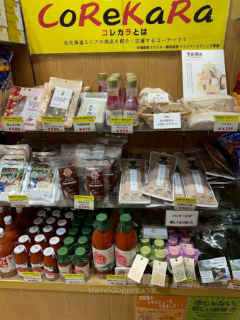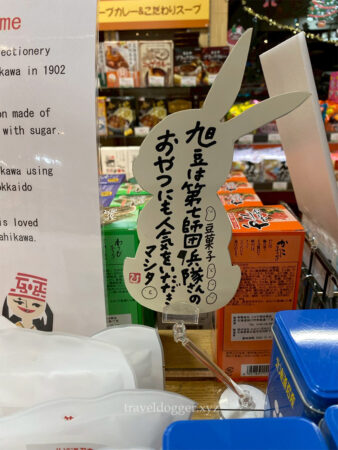 おみやげコーナーは充実していて、旭川の名物のおかしや乾き物、北海道の銘菓などが売っていました。おもしろかったのはこちらのコーナー