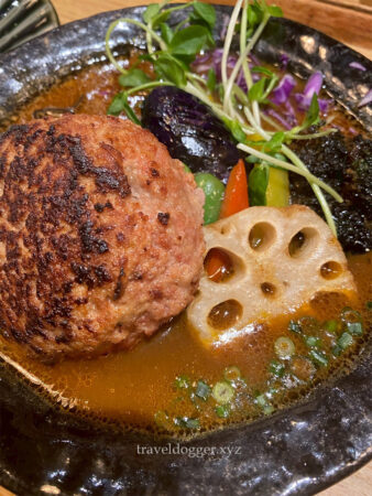 今回旭川でスープカレーか、旭川らーめんが食べたかったので、スープカレーを採用しました。食べログの点数で行ったけど、中々混んでいて、着丼まで30分以上待った。ご飯たけてなかったのかな。22時すぎになってしまい、ハンバーグのカレーを食べるおデブっぷり。味は中々こってり系。スープカレーの概念覆されました。