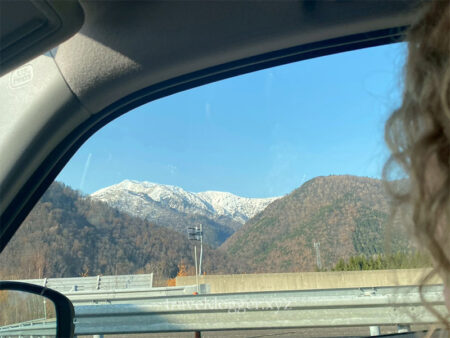 車内からになり、さっきの吹雪どこにいった?って感じですが、こちらが大雪山です。大雪山、越えていったよね。尾形ね。こんなデカい山をさむかったろうな、当時の人ってすごいなあって思いながら、次の目的地平取に参ります。