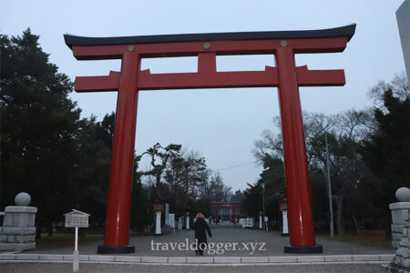 雰囲気は凛としていて、夕方の訪問だったのでわたしたちの他には誰も居ませんでした。旭川を守っている社です。キリリとしていました。2024年には中に入れず(バスの時間の兼ね合いで)でしたが、野生のキタキツネを見ることができました。普通に道路を横断していて、驚いたのを覚えています。