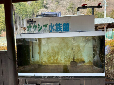謎の水槽が・・・!中にはヤマメ?鮎?がいました。キャンプ場も併設していたり、お食事処も併設しているので食べたりできるのか・・・?